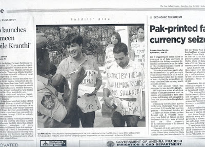 Corrupt politics and irresponsible citizens are both responsible for the status quo in Kashmir. RIK, an initiative by Kashmir Pandits, especially the youth, has been growing in its effort and influence since its inception in year 2006. I proclaimed allegiance to it almost instantly when I heard of it but joined the efforts a few months later, in December 2006, by holding a silent protest at Indira Park, Hyderabad, the officially designate place for any protests by citizens.